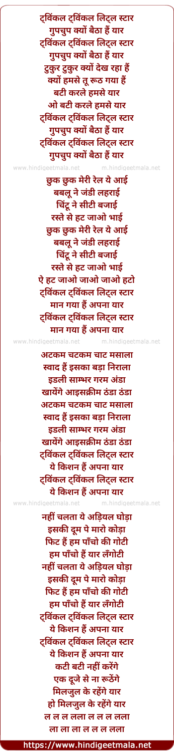 Lyrics of Twinkle Twinkle - ट्विंकल ट्विंकल