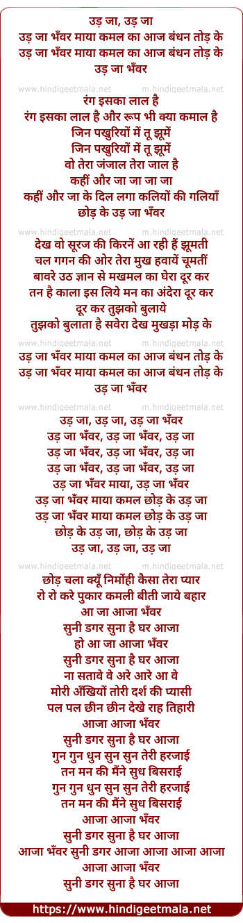 Lyrics of Ud Jaa Bhanwar Maayaa Kamal Kaa Aaj Bandhan Tod Ke - उड़ जा भँवर माया कमल का आज बंधन तोड़ के