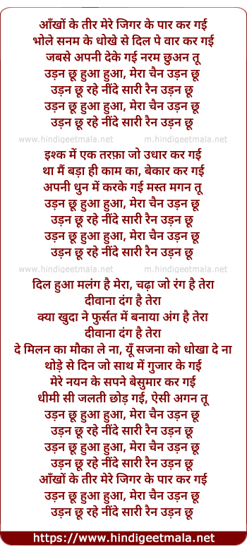 Lyrics of Udan Choo - उड़न छू