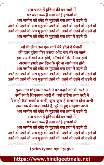 Lyrics of Udane Do, Udane Do Abb Mujhko Udane Do - उड़ने दो, उड़ने दो अब मुझको उड़ने दो