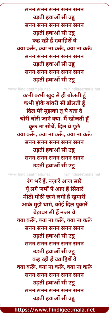 Poetic Translation - Lyrics of Udati Hawaao Se Udu - सनन सनन सनन सनन सनन