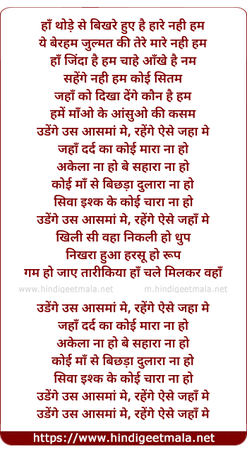 Lyrics of Udenge Us Aasmaan Me - हाँ थोड़े से बिखरे हुए है हारे नही हम