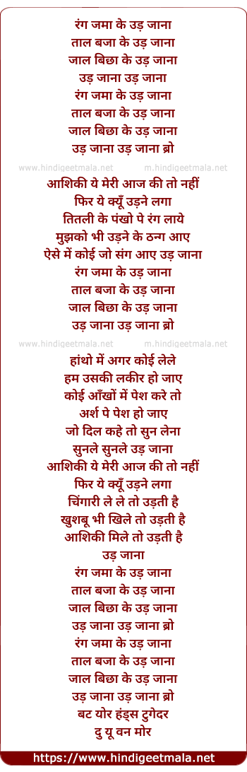 Lyrics of Udh Jaana (Remix) - रंग जमा के उड़ जाना