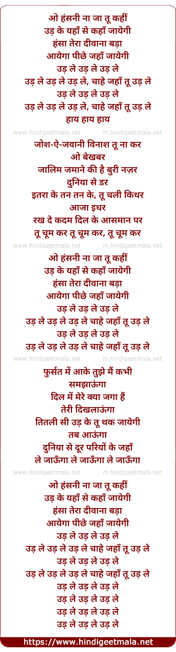 Lyrics of Udlay Udlay Chahe Jahaan - ओ हंसनी ना जा तू कहीं