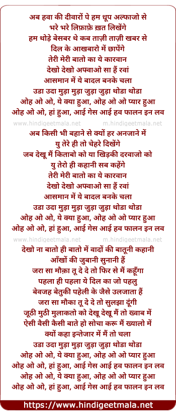 Lyrics of Uh Oh Uh Oh Kya Hua (Remix) - अब हवा की दीवारों पे हम धूप अल्फाजो से