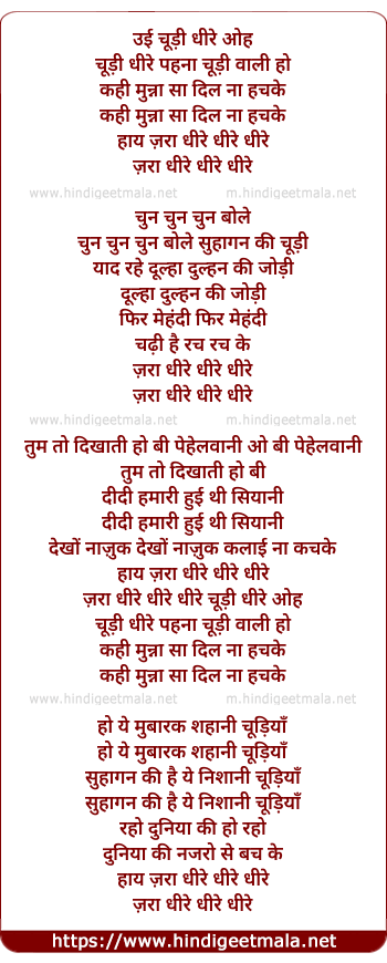 Lyrics of Ui Chudi Dheere Pehna Chudi Wali Ho - उई चूड़ी धीरे पहना चूड़ी वाली हो