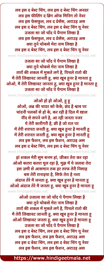 Lyrics of Ujla Sa Chand Pe Paigam Likha Hai - उजला सा चाँद पे पैगाम लिखा है