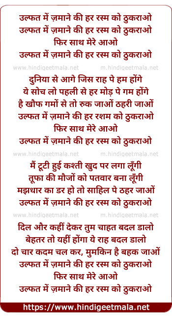 Lyrics of Ulfut Me Zamane Ki (Female) - उल्फत में ज़माने की