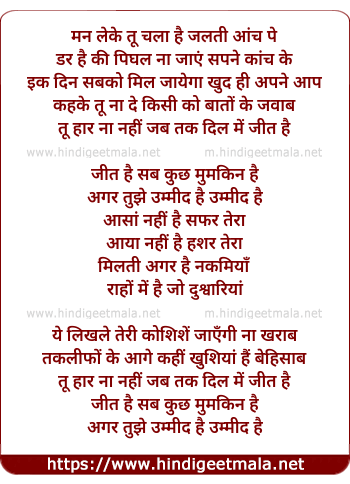 tu haar na nahi jab tak dil mein jeet hai