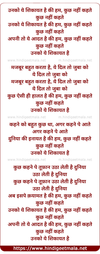 Unko Ye Shikayat Hai Ke Ham, Kuchh Nahin Kahte - उनको ये शिकायत है की हम, कुछ नहीं कहते