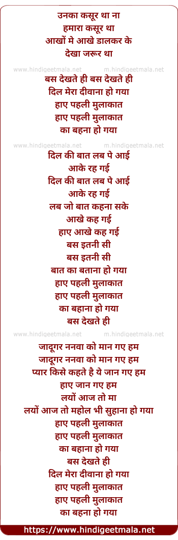 Lyrics of Unka Kasoor Tha Na Hamara - उनका कसूर था ना हमारा