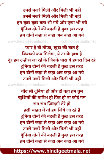 Lyrics of Unse Nazre Mili Aur Mili Bhi Nahi - उनसे नजरे मिली और मिली भी नहीं