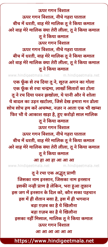 Lyrics of Uupar Gagan Vishaal - ऊपर गगन विशाल