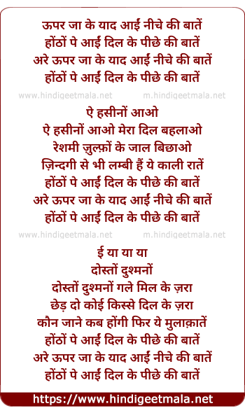 Lyrics of Uupar Jaa Ke Yaad Aain Niche Ki Baaten - ऊपर जा के याद आईं नीचे की बातें