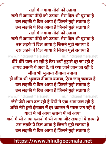 rato me jagaya nindo ko udaya, mera dil bhi churaya hai