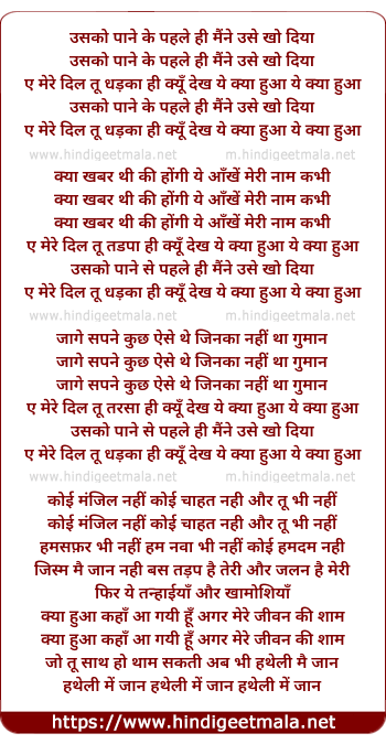 Lyrics of Usko Pane Ke Pehle - उसको पाने के पहले
