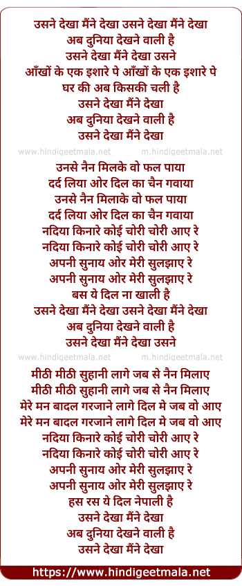 Lyrics of Usne Dekha Maine Dekha - उसने देखा मैंने देखा