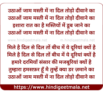 Lyrics of Uthao Jaam Masti Me Na Dil Todo Deewane Ka - उठाओं जाम मस्ती में ना दिल तोड़ो दीवाने का