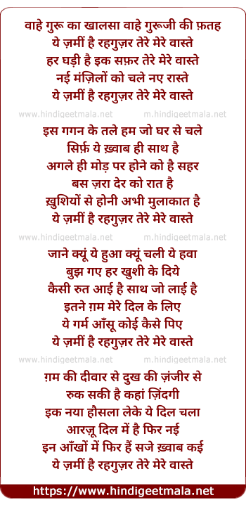 Vaahe Guru, Ye Zamin Hai Rahaguzar Tere Mere Vaaste - वाहे गुरू , ये ज़मीं है रहगुज़र तेरे मेरे वास्ते