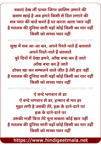 hai matlab ki duniya sari yahan koi kisi ka yaar nahi