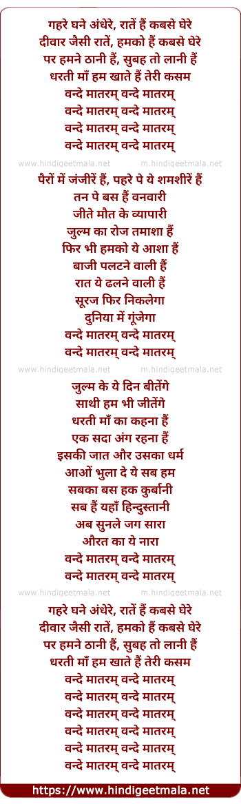 Lyrics of Vande Mataram (Mano) - गहरे घने अंधेरे, रातें हैं कबसे घेरे