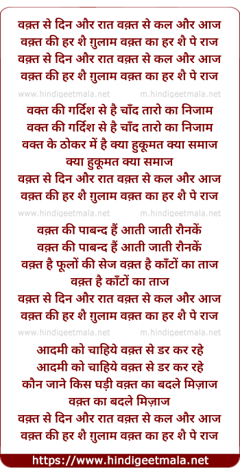 Lyrics of Vaqt Se Din Aur Raat - वक़्त से दिन और रात