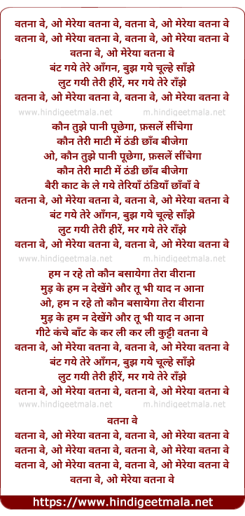vatanaa ve, o mereya vatanaa ve, vatanaa ve, o mereya vatanaa ve