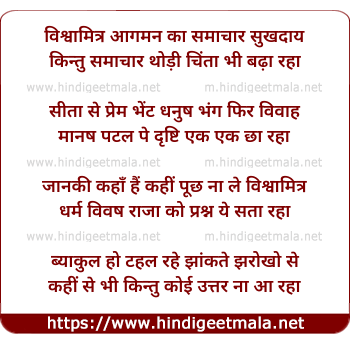 Lyrics of Vishwamitra Aagaman Ka - विश्वामित्र आगमन का