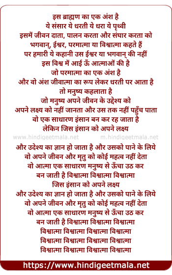 Poetic Translation - Lyrics of Vishwatma - विश्वात्मा