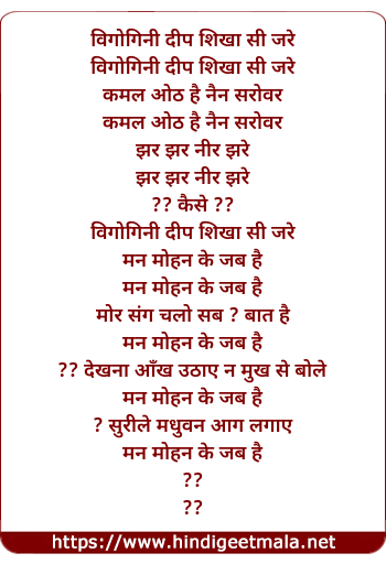 Lyrics of Vigogini Deep Shikha Si Jare - विगोगिनी दीप शिखा सी जरे