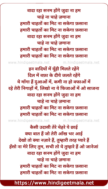 Lyrics of Waada Raha Sanam - वादा रहा सनम होंगे जुदा ना हम