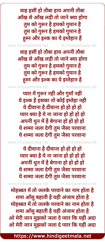 Lyrics of Waah Haseen Ho Tauba - वाह हसीं हो तौबा
