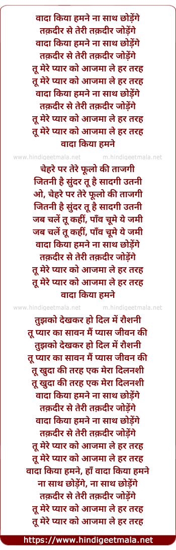 Lyrics of Wada Kiya Humne Na Sath Chhodege - वादा किया हमने ना साथ छोड़ेंगे