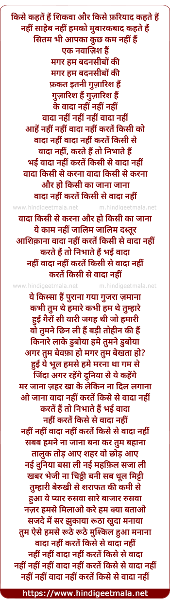 Lyrics of Wada Nahi Karte Kisi Se - वादा नहीं करतें किसी से