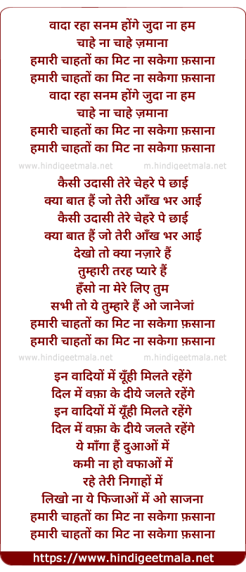 Lyrics of Wada Raha Sanam Honge Juda Na Hum (Duet) - वादा रहा सनम होंगे जुदा ना हम