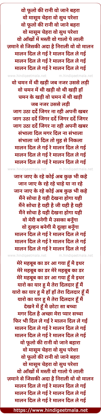 Lyrics of Wo Wo Malan Dil Le Gayi Re - वो वो मालन दिल ले गई