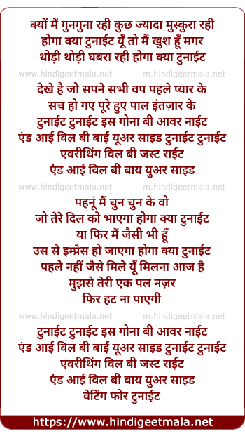 Lyrics of Waiting For Tonight, Hoga Kya Tonight Yun To Main Khush Hun Magar - वेटिंग फॉर टुनाइट, होगा क्या टुनाईट यूँ तो मैं खुश हूँ मगर