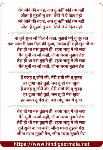 mere jeene ki wajah, ab tu nahi koi gham nahi