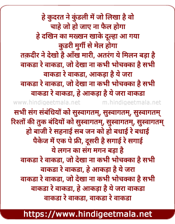 Lyrics of Wakda Re - वाकडा रे