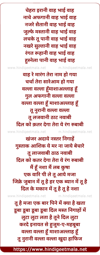 Lyrics of Wallaa Wallaa Masha Allah - वल्ला वल्ला माशा अल्लाह