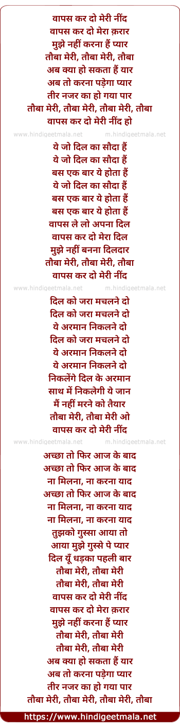 Lyrics of Wapas Kar Do Meri Nind - वापस कर दो मेरी नींद