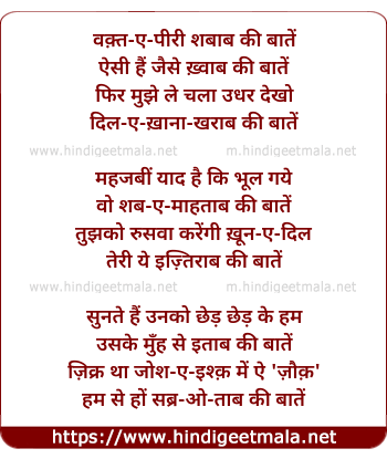 Lyrics of Waqt E Piri Shabaab Ki Baaten - वक़्त-ए-पीरी शबाब की बातें
