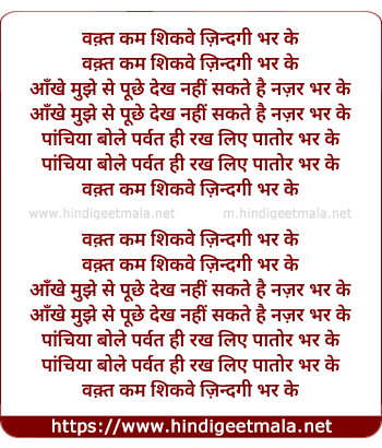 Lyrics of Waqt Kam Shikve Zindagi Bhar Ke