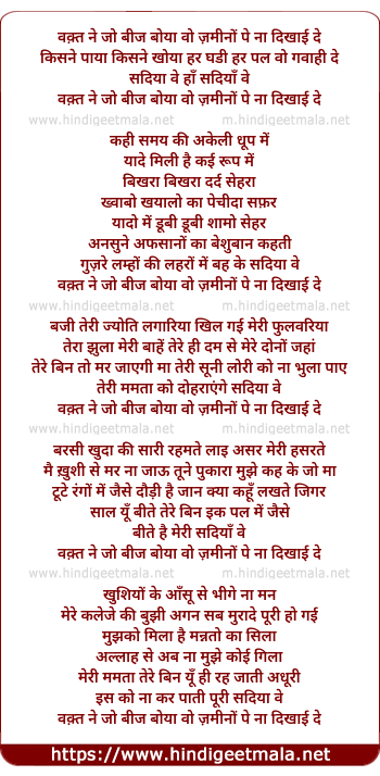 Lyrics of Waqt Ne Jo Bij Boyaa - वक़्त ने जो बीज बोया