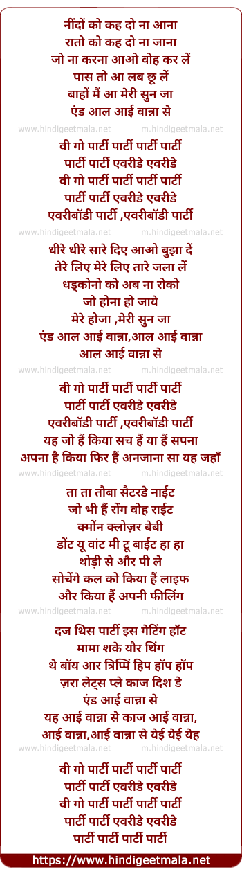 Lyrics of We Go Party (Everyday) - वे गो पार्टी (एवरीडे )