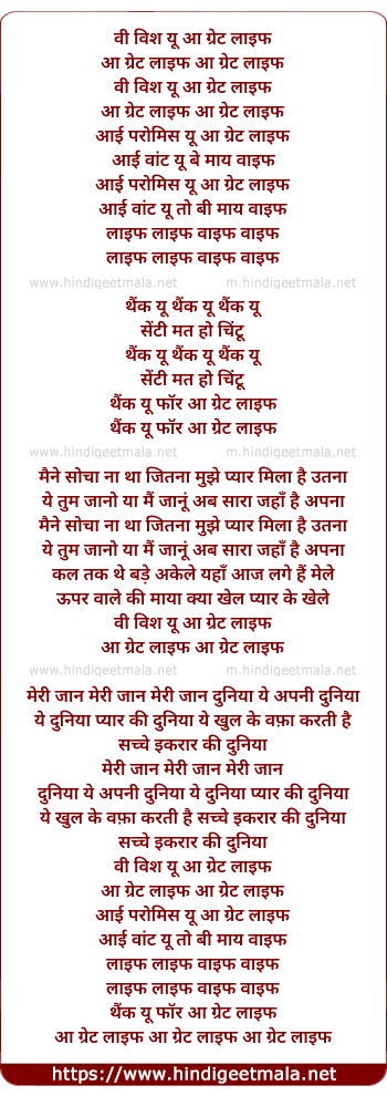Poetic Translation - Lyrics of We Wish You A Great Life - वी विश यू आ ग्रेट लाइफ