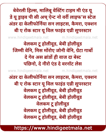 Poetic Translation - Lyrics of Welcome To Hollywood - वेलकम टू होलीवूड
