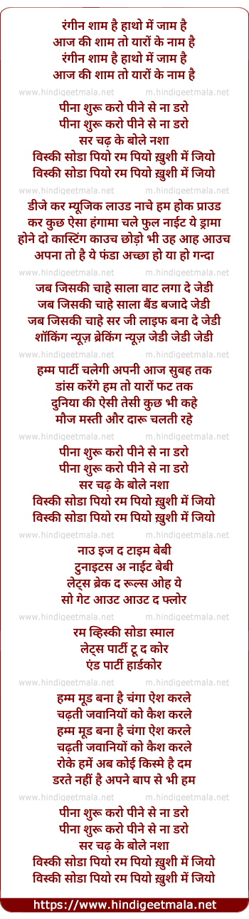 Lyrics of Whiskey Soda - व्हिस्की सोडा