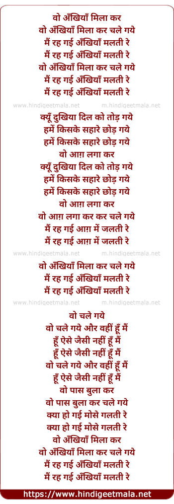 Lyrics of Wo Akhiyaan Milaa Kar Chale Gaye - वो अँखियाँ मिला कर