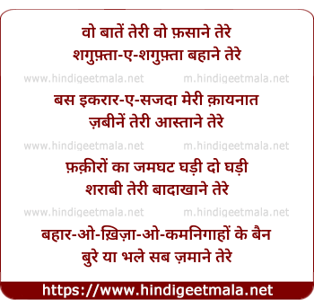 Lyrics of Wo Baaten Teri Wo Fasaane Tere - वो बातें तेरी वो फ़साने तेरे